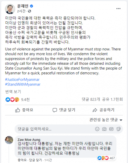 미얀만 국민들 모두 힘내셨으면.