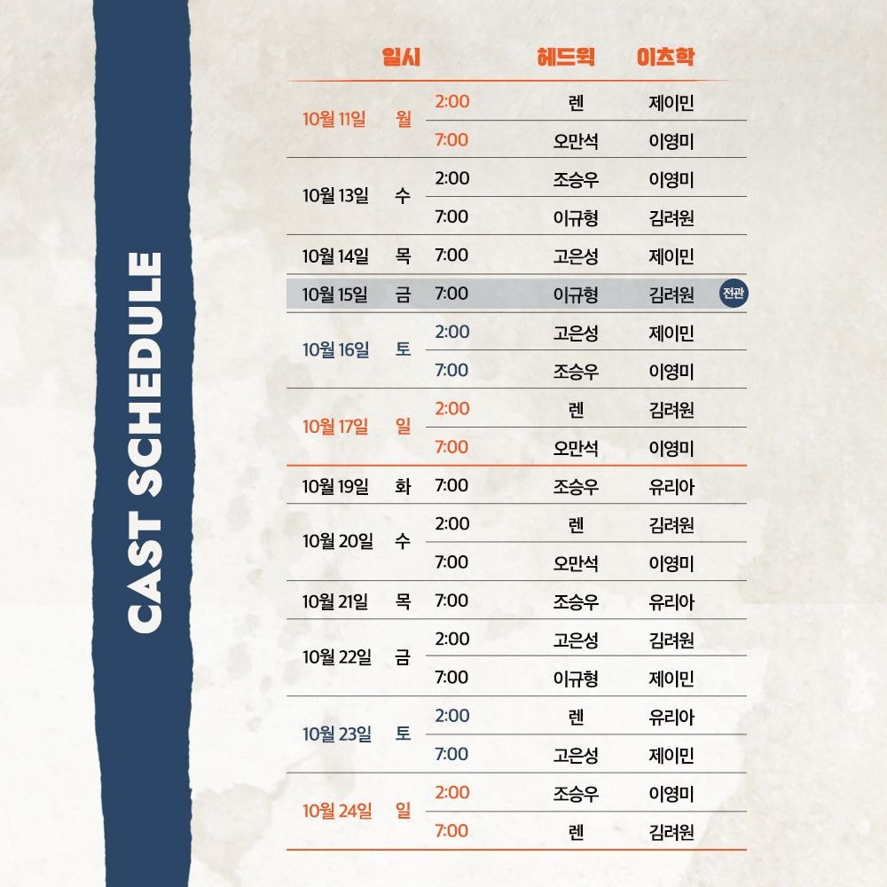 티켓팅 10월 1일 오후 3시