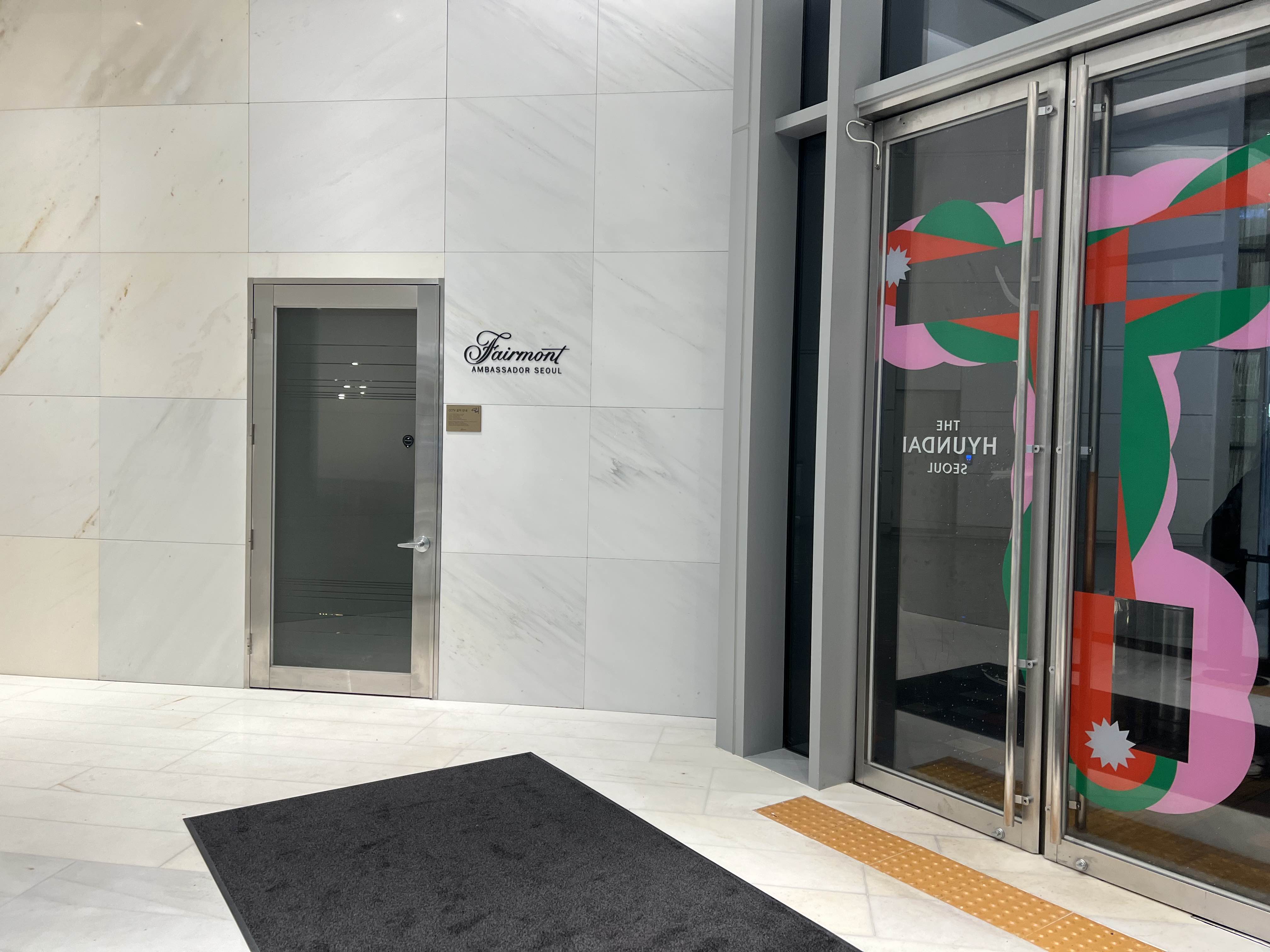 여의도 더현대 1층과 페어몬트 앰배세더 호텔 로비가 연결되어 있어서 야외로 나갈 필요가 없다.