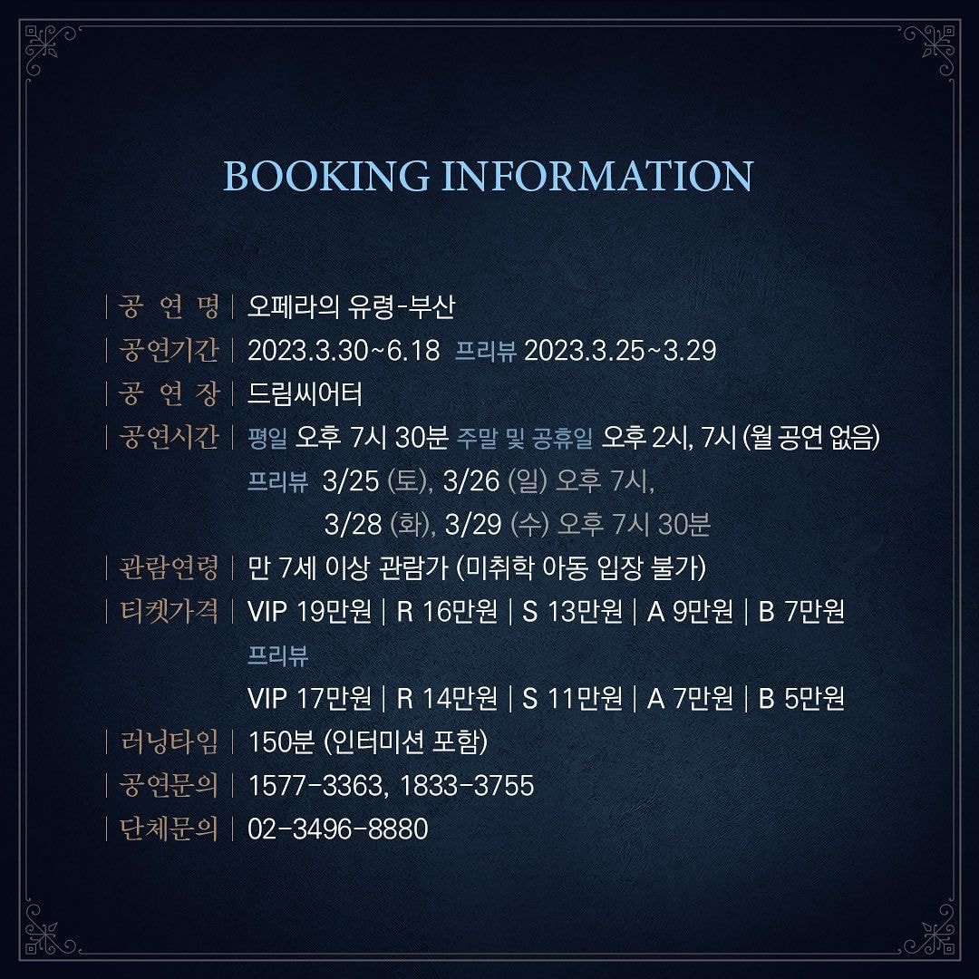 | 오페라의 유령 2023 서울 1차 스케줄, 예매 정보 (0) | 2023.05.15 |
