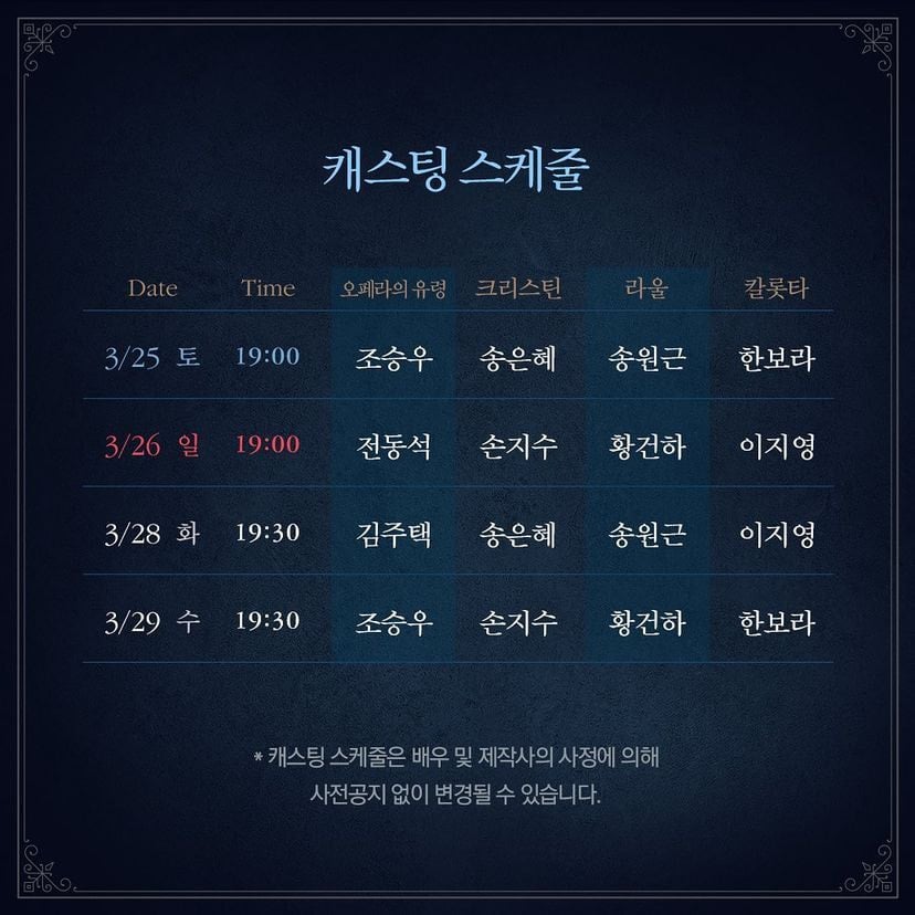 프리뷰 캐스팅 스케줄