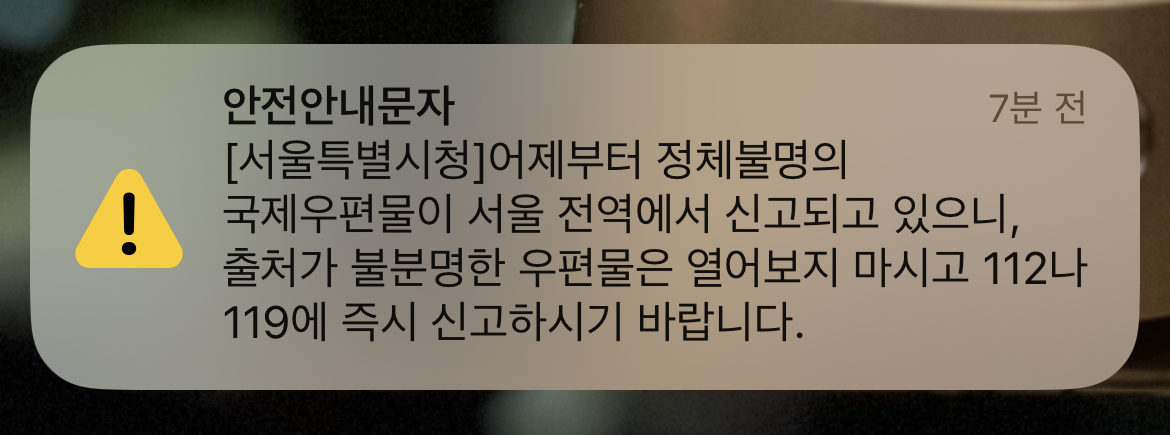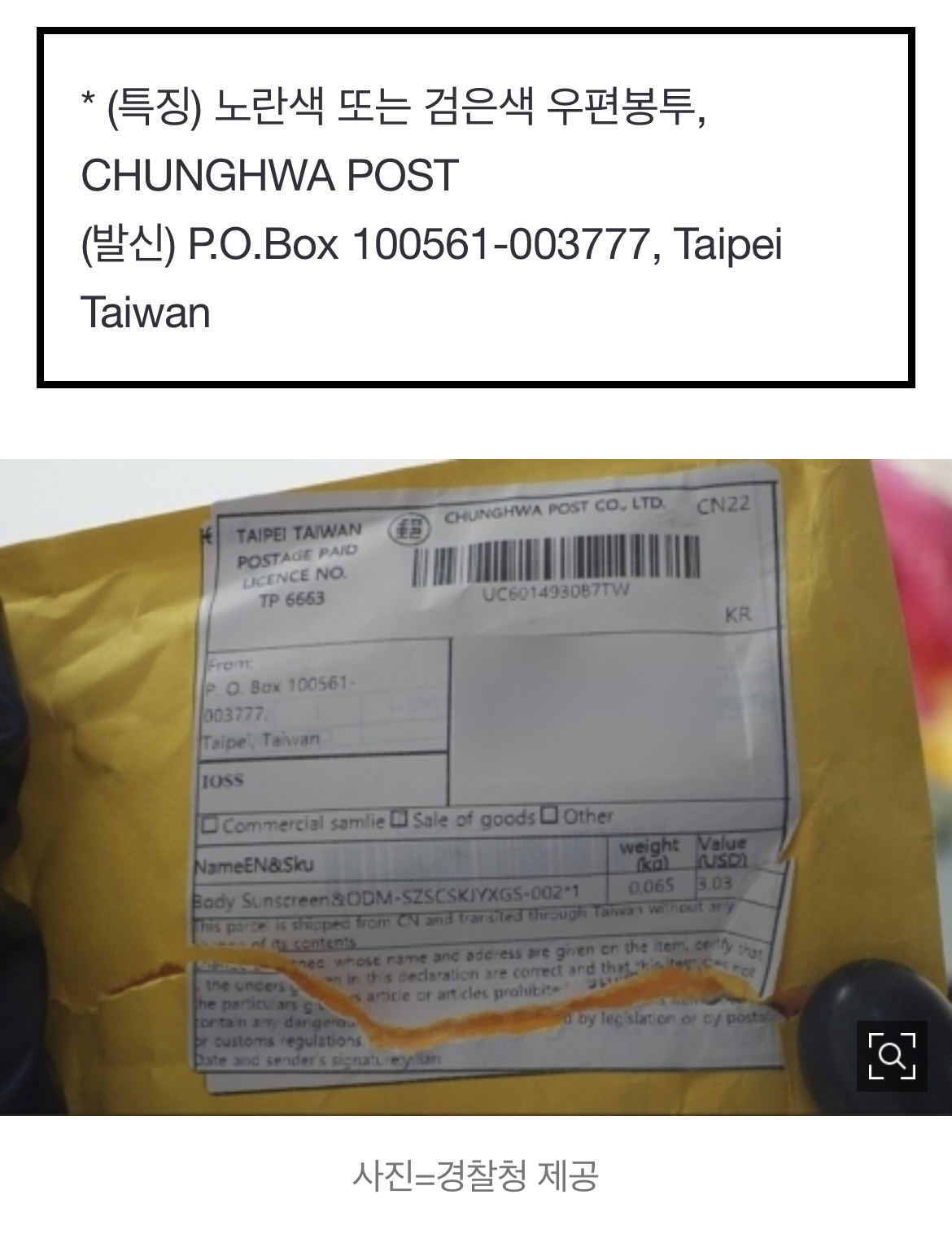 경찰청은 "이와 유사한 우편물을 수취하신 분은 우편물을 개봉하지 말고, 즉시 가까운 경찰관서나 112로 신고하여 주기기 바란다"며 대만발 노란 소포를 유의해 달라고 당부했습니다.