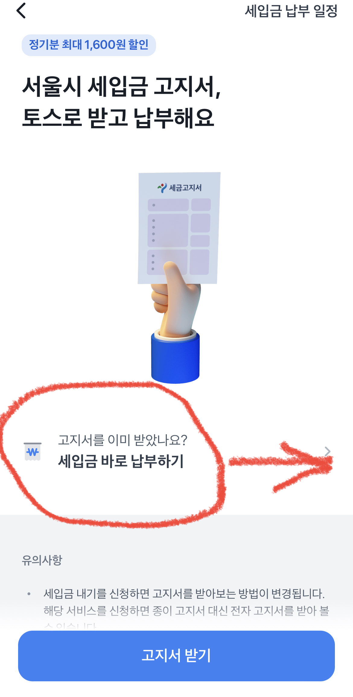 고지서를 이미 받았으므로