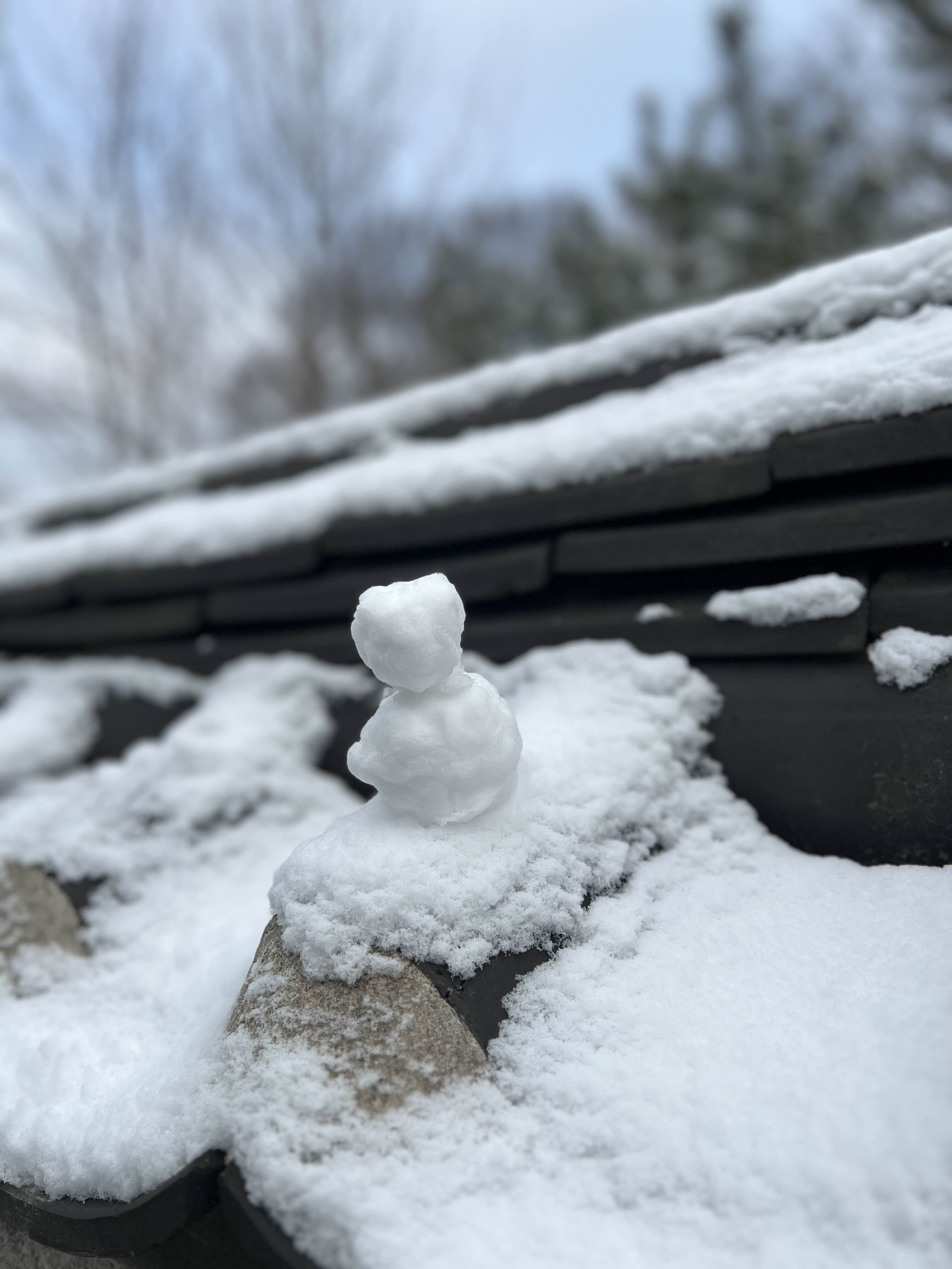 처마에 쌓인 눈과 눈사람.