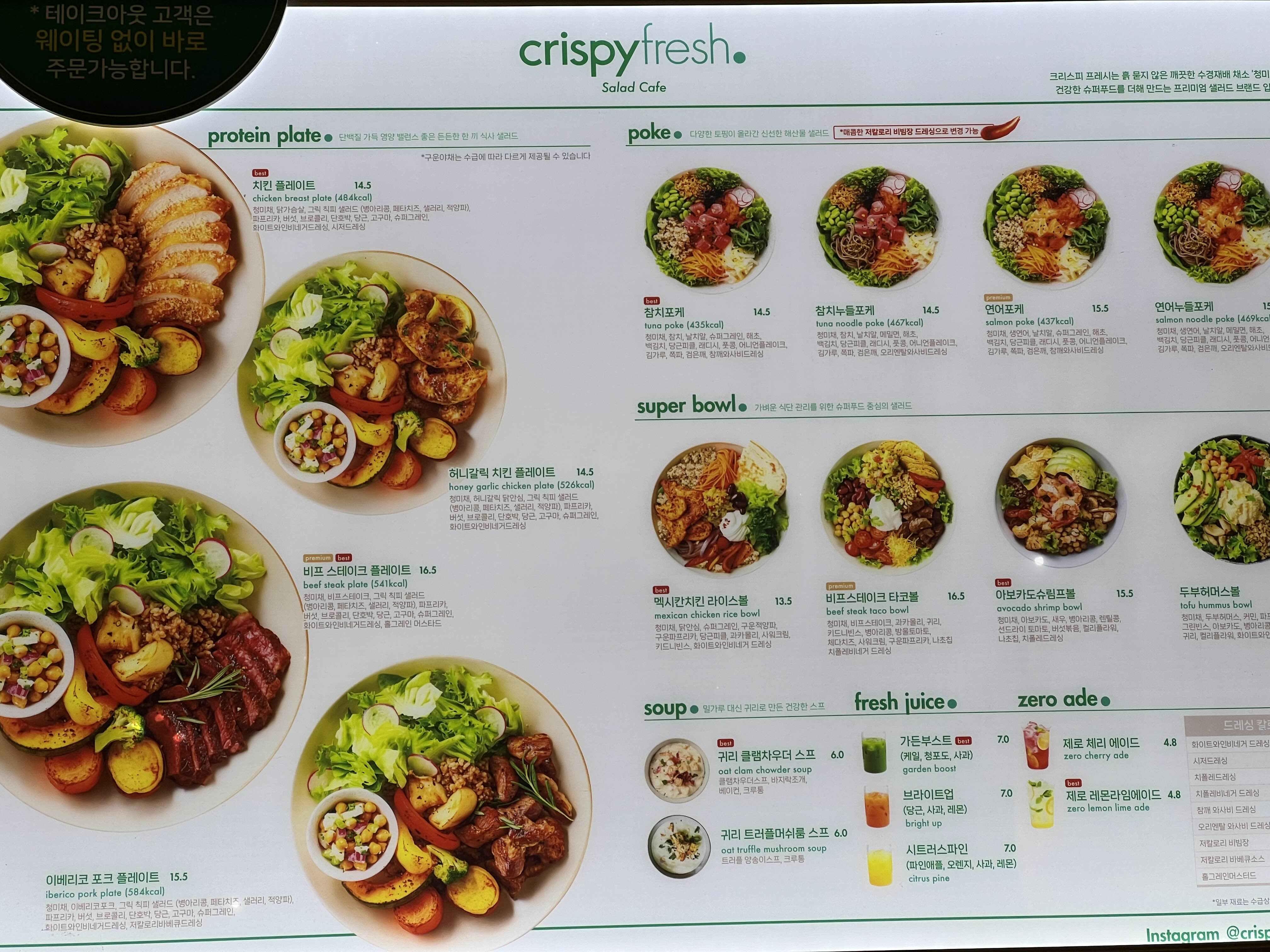 청미채, 닭안심, 슈퍼그레인, 구운적양파, 구운파프리카, 당근피를, 과카올리, 사워크림, 키드니빈스, 화이트와인비네거 드레싱